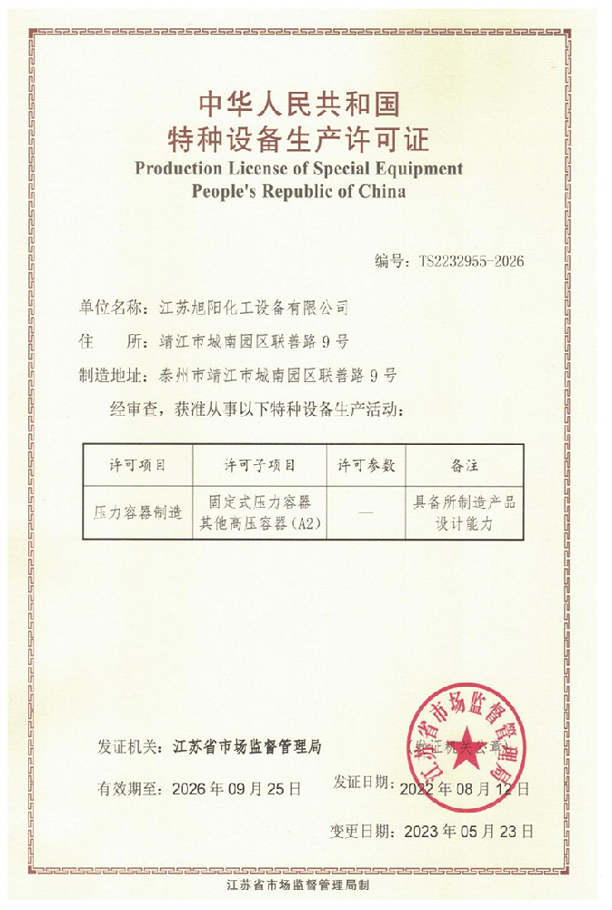江蘇旭陽化工設備有限公司專業從事各類化工、環保、制藥、發酵、食品、新材料、鋰業等項目設計、制造及壓力容器的生產制造,是一家集研發、生產和進出口貿易于一體的高科技企業。